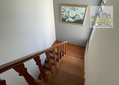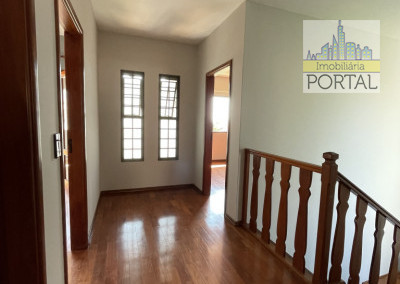 Piso superior: 3 dormitórios (todos com armários planejados) sendo 1 suíte com banheira, 1 banheiro social, varanda na suíte e 1 dormitório da frente.